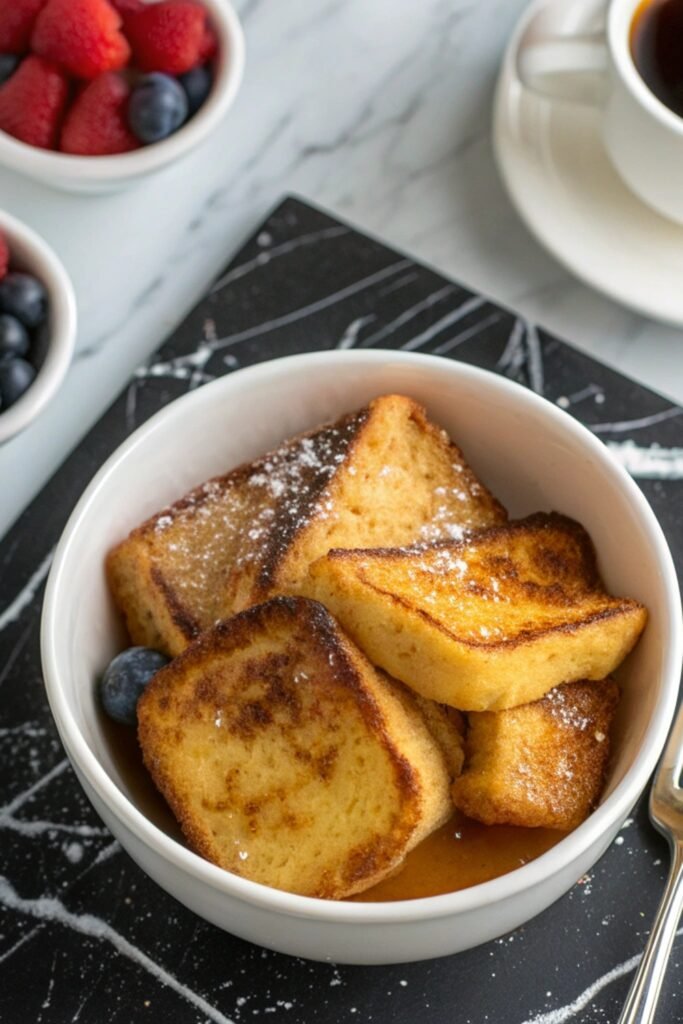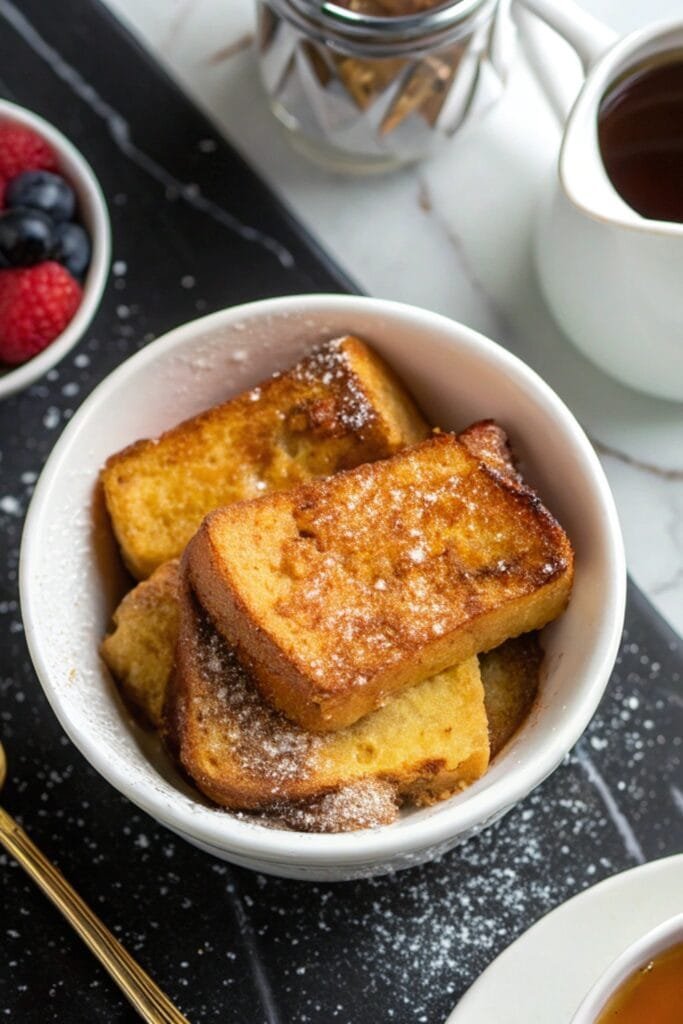 Air Fryer French Toast Bites are perfect for cozy breakfasts or brunch spreads. Serve them in small bowls with syrup on the side for dipping or layer them with berries and yogurt for a parfait-style meal.