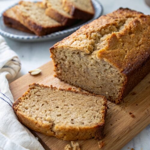 We especially love this version for the rich, almost cake-like batter the almond flour creates. It adds a lovely texture that pairs perfectly with the sweet fruit. This loaf is warm and satisfying, but also feels comforting without being heavy!
