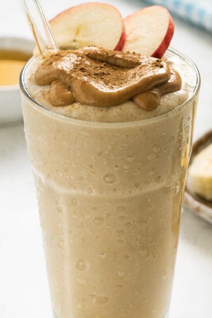 While technically considered a breakfast drink, this classic apple banana smoothie is closer to a milkshake. It tastes similar to apple pie in a glass, but so much better.