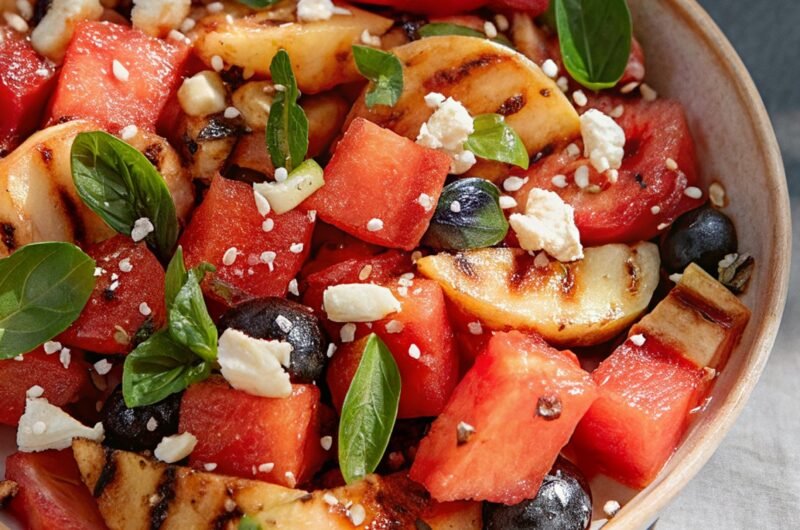 This watermelon peach salad is juicy and bright, with just the right amount of natural summer sweetness. Drizzled with lime juice and sprinkled with fresh …