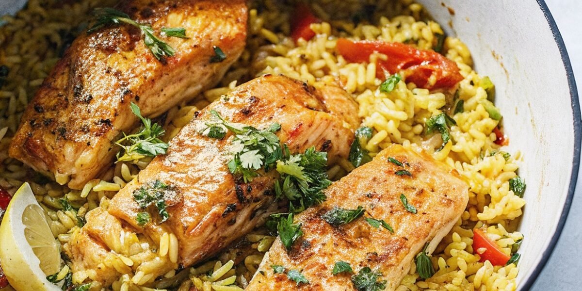 One Pot Salmon and Rice (AKA salmon with seasoned rice) is a soft yet hearty meal, richly flavored with garlic and broth, flooded with juices …