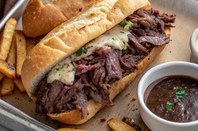 A classic, tender and flavorful Crockpot French Dip Sandwich with delicious dipping jus, topped with melted provolone cheese. It’s also made with slow cooked beef, …