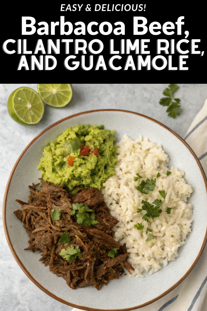 This recipe brings together three parts that fit like they were made for each other. The tender and flavorful barbacoa beef cooks low and slow until it’s fall-apart ready, giving you juicy bites filled with smoky, tangy, and slightly spicy seasoning. Alongside, you’ve got fluffy cilantro lime rice that’s fresh, fragrant, and the perfect balance to the richness of the beef. And then there’s the guacamole, creamy with ripe avocados, lifted with lime, and dotted with onion, cilantro, and a touch of spice.