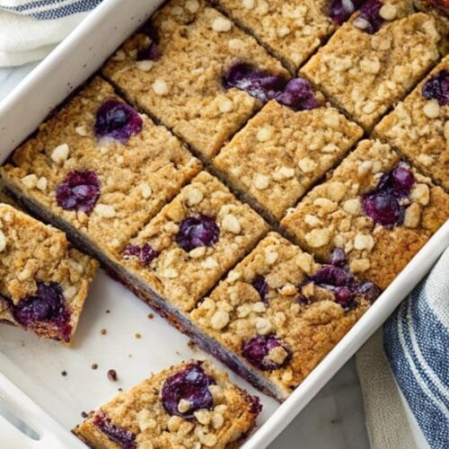One little trick I enjoy is warming the bars in the microwave for a few seconds before eating. The blueberries get soft and jammy again, making each bite taste freshly baked.