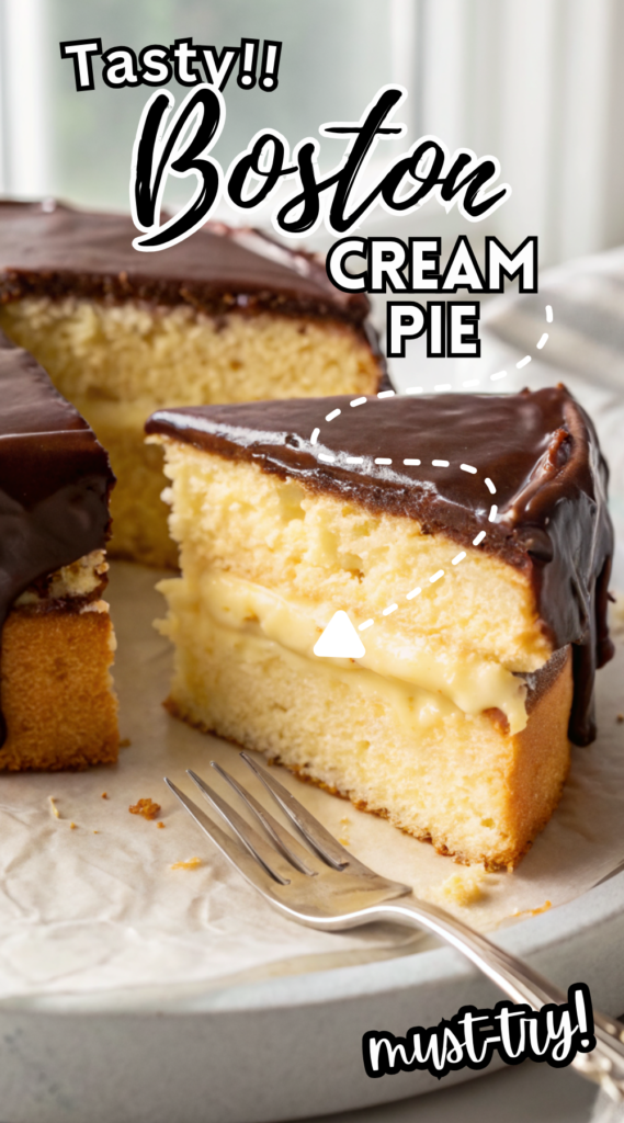 Boston Cream Pie brings together simple baking steps with a classic flavor that never gets old. The mix of soft cake, cool cream, and smooth chocolate feels comforting and special at the same time. Every slice looks elegant without needing fancy tools or skills.