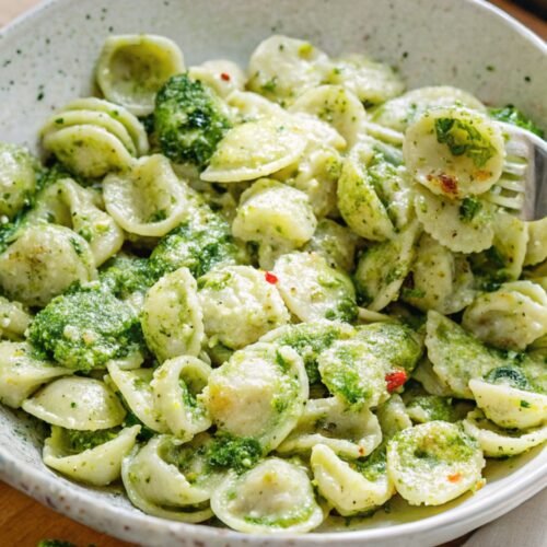 - Cook the Pasta: Bring a large pot of salted water to a steady boil. Add the orecchiette and cook until just tender, following the package timing. Stir occasionally so nothing sticks. Before draining, scoop out about one cup of pasta water and set it aside. Drain the pasta and keep it warm.