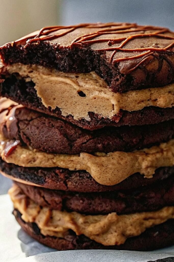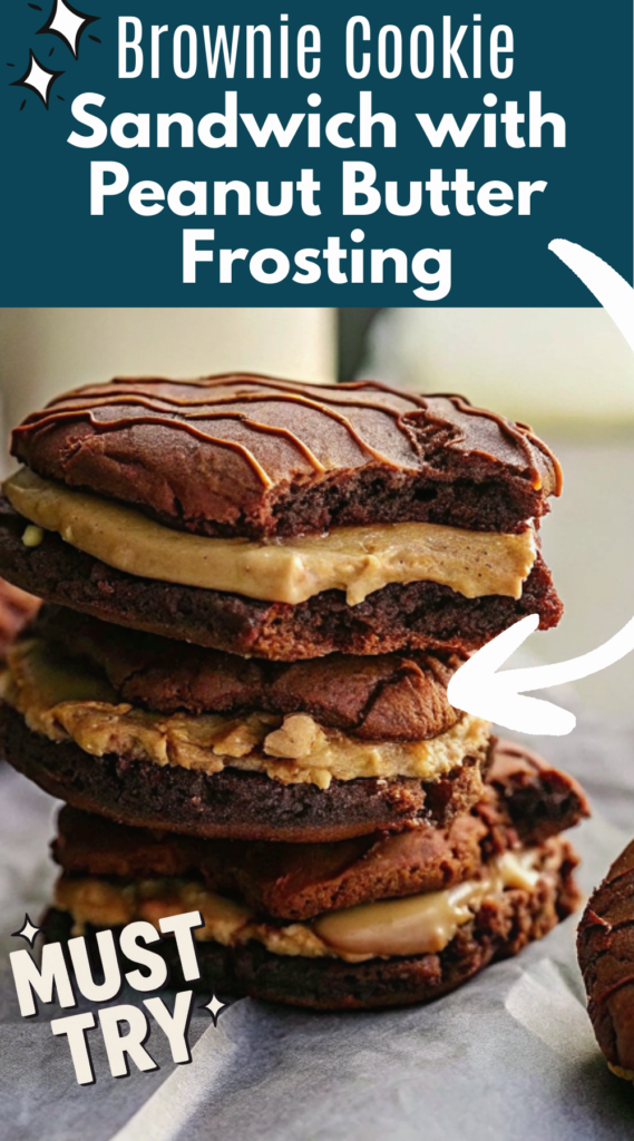 Brownie Cookie Sandwich with Peanut Butter Frosting is rich, chewy, and creamy, with every bite delivering chocolate and peanut butter bliss.