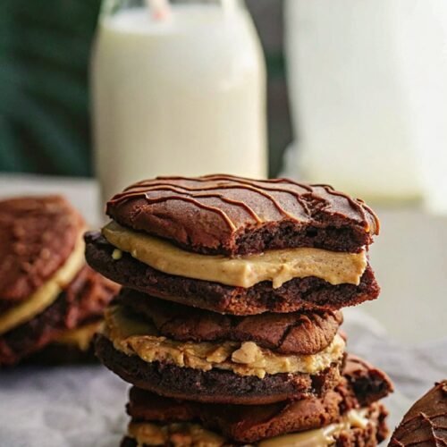 - Assemble the Sandwiches: Cut brownies and cookies into similar-sized squares. Spread a generous layer of peanut butter frosting onto a brownie square. Top with a chocolate cookie and press lightly to sandwich. Repeat with remaining pieces.