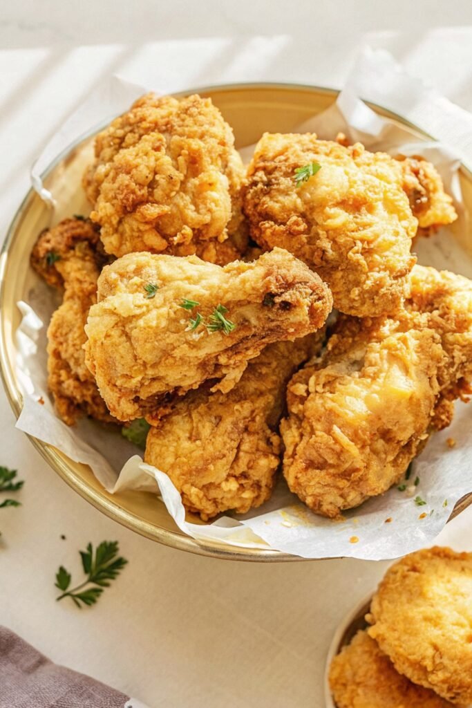 Let the fried chicken rest for about 5 minutes before serving. This short pause helps the juices stay inside and keeps the crust crisp.
