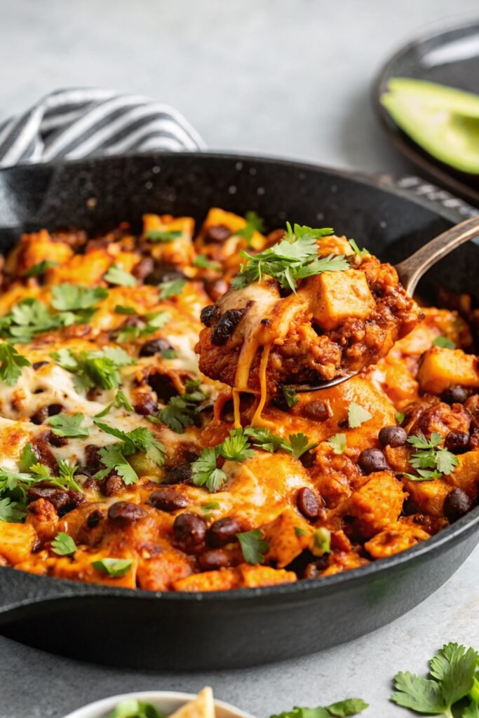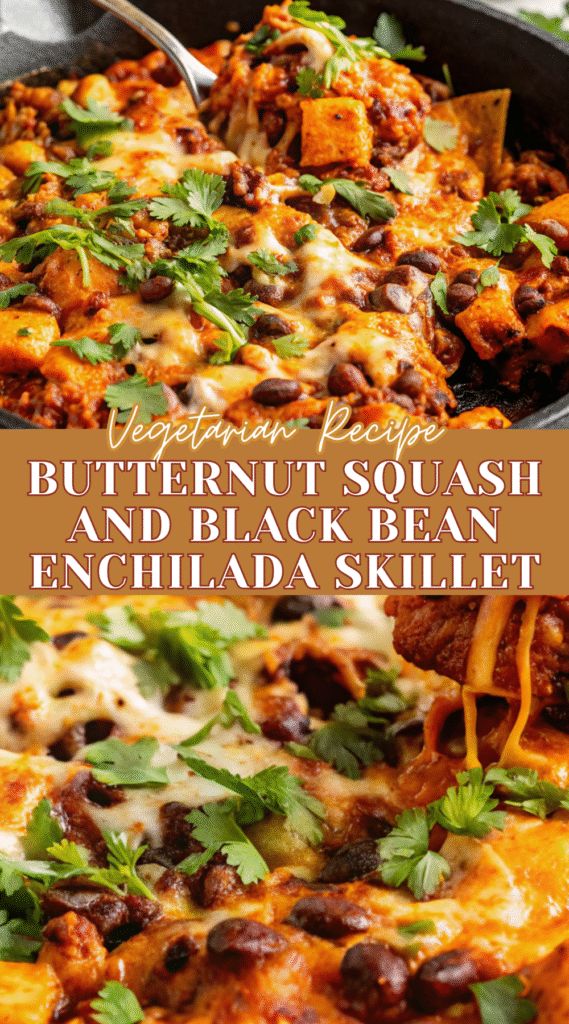 Butternut Squash & Black Bean Enchilada Skillet fits beautifully into all kinds of meals. Serve it over warm rice for a hearty dinner, or scoop it into tortillas for easy enchilada-style tacos. You can also spoon it over quinoa, serve it with roasted vegetables, or pile it onto tortilla chips for a skillet-style nacho plate.