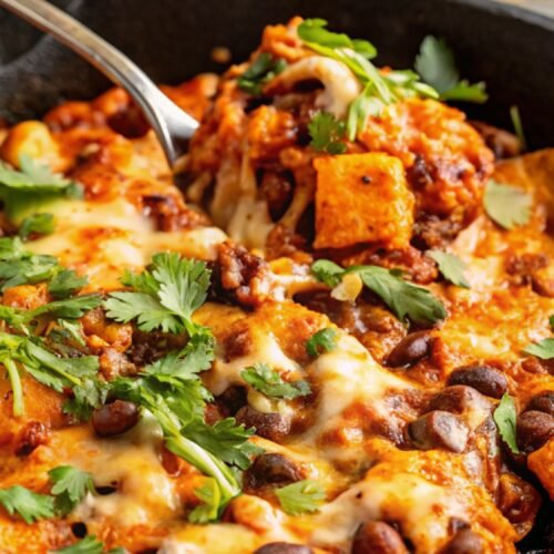 Butternut Squash & Black Bean Enchilada Skillet brings so much comfort with so little effort. The tender squash, rich sauce, and soft beans work together in a way that feels almost celebratory, even though everything cooks in one simple pan. It’s the kind of dinner that makes the kitchen feel cozy and relaxed without asking for much time at all.