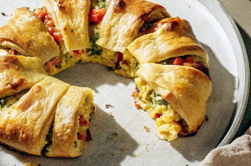 Delicious flaky crescent dough, soft scrambled eggs and crispy bacon… this Crescent Breakfast Ring recipe is a great alternative to your usual weekend fry-up… or …