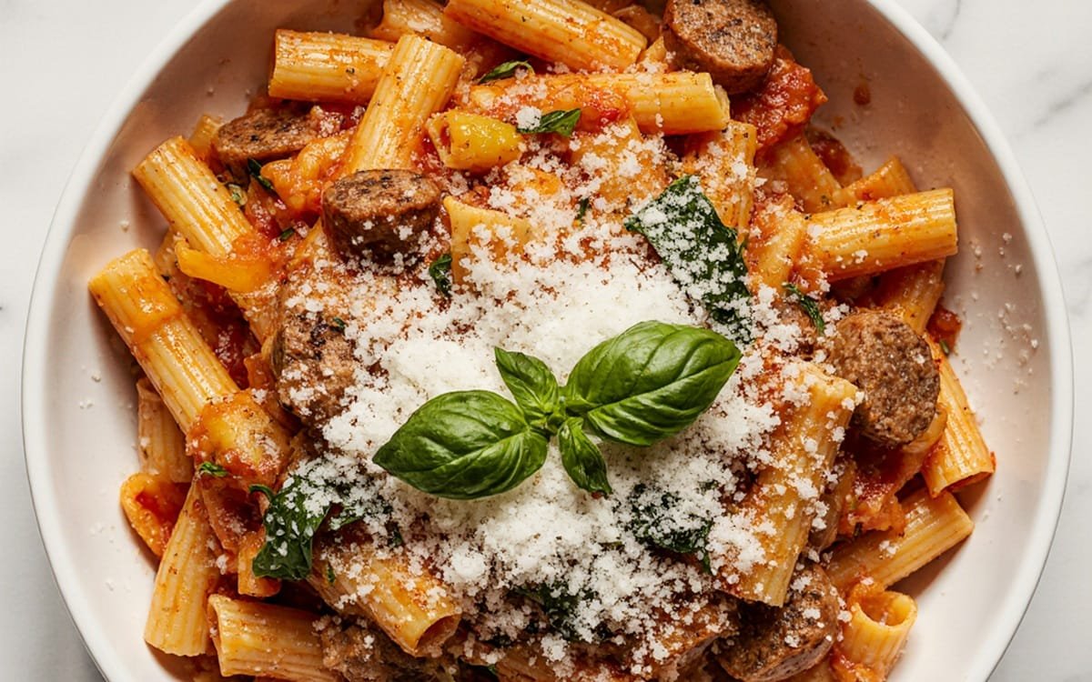 This recipe turns everyday pasta into a colorful, hearty, and comforting meal. Juicy sausage gets browned to perfection, releasing savory flavors that blend beautifully with …