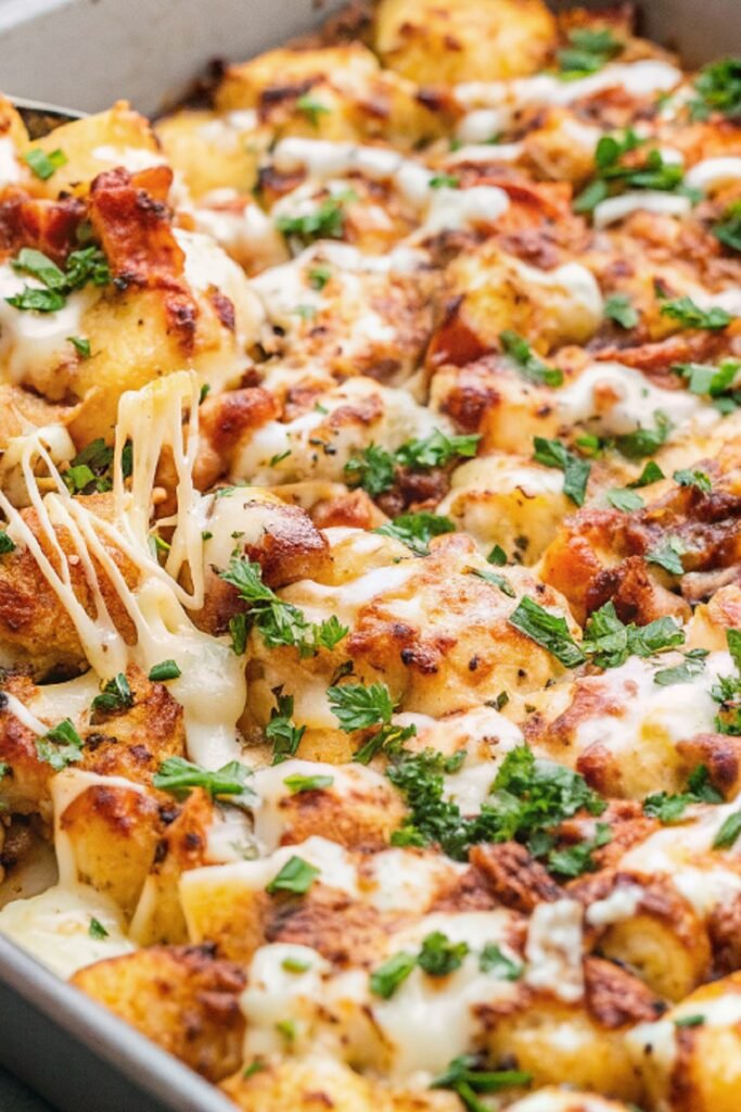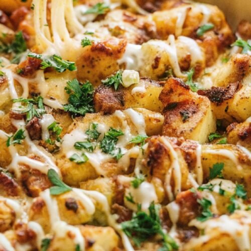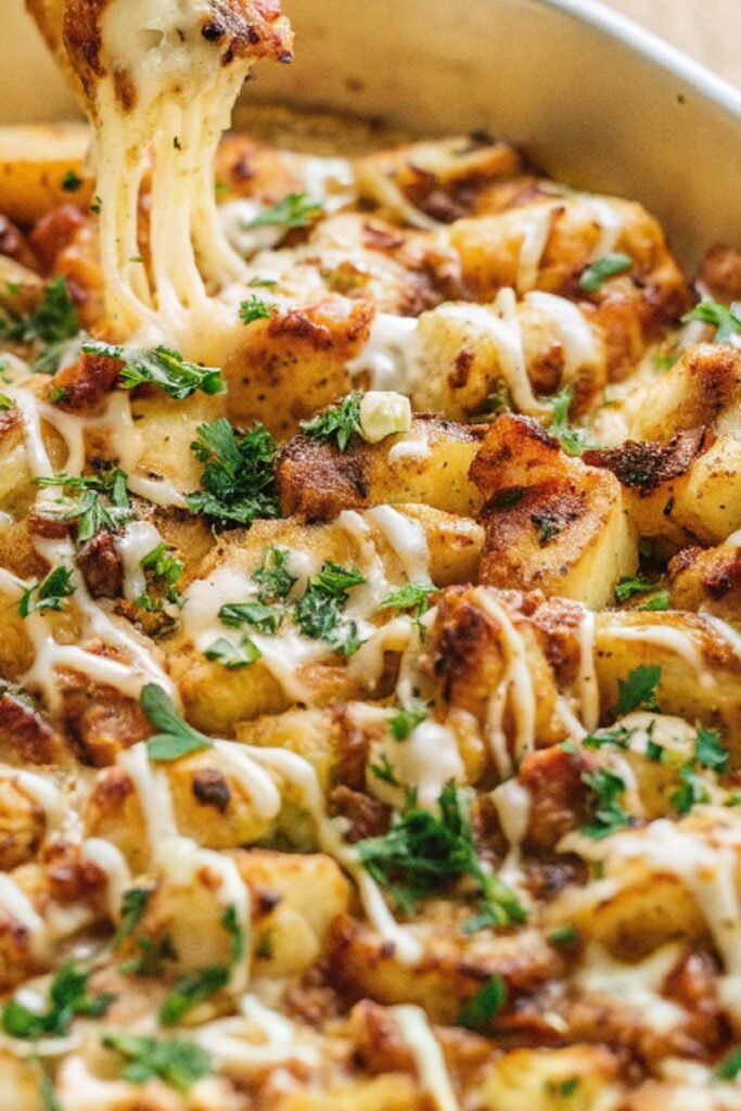 Cheesy Bacon Ranch Potatoes bring together everything people love in a comfort side. Crispy edges, soft centers, melted cheese, and bold seasoning all show up in one pan without complicated steps. The dish feels familiar, filling, and always welcome at the table.