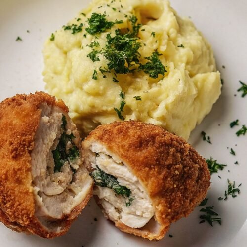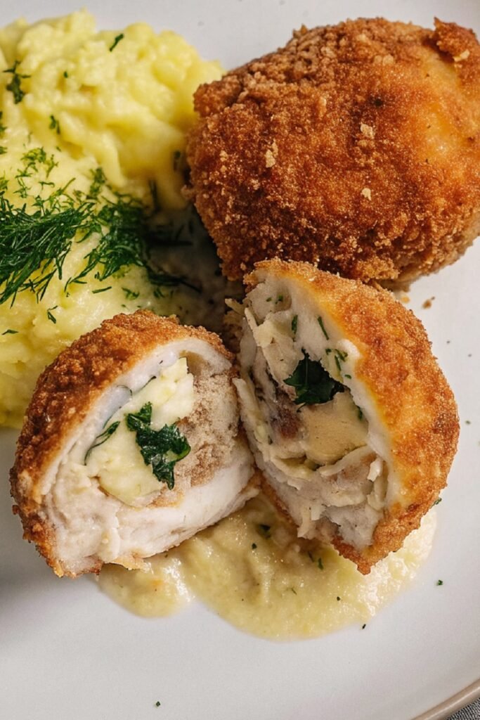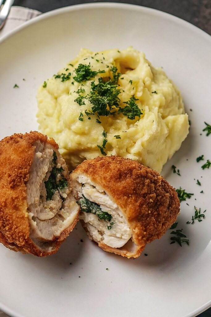 Chicken Kiev pairs beautifully with mashed potatoes that soak up extra butter. Steamed green beans or peas add balance and color. A simple salad with lemon dressing works nicely too.