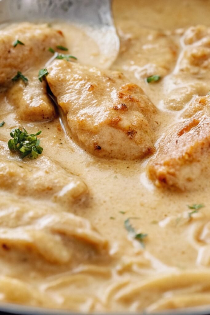 For vegetables, I usually serve roasted broccoli, green beans, or a crisp side salad. The creamy sauce balances well with fresh or lightly seasoned sides, and everything feels complete without being heavy.