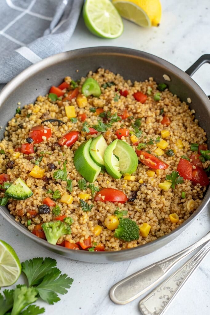 Delicious One-Pan Quinoa proves that healthy, colorful meals don’t need extra effort or multiple pans. The combination of fluffy quinoa, fresh vegetables, and aromatic herbs makes it feel comforting and satisfying.