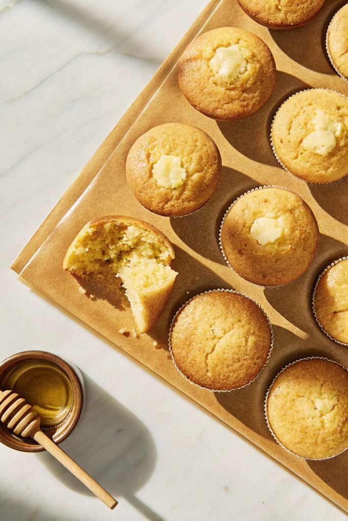 Cornbread muffins taste best while still warm. Serve them with butter and a drizzle of honey for breakfast. They also pair nicely with chili, soup, and roasted vegetables.
