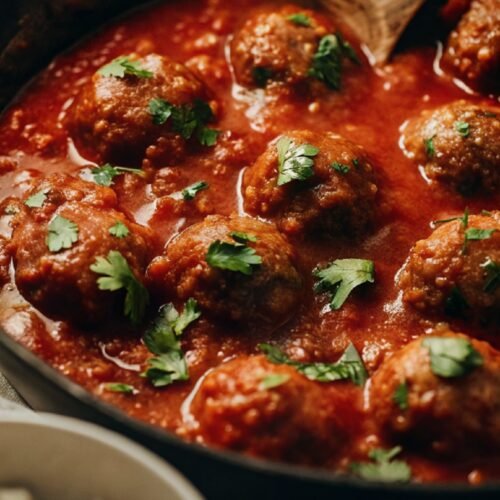 - Finish with meatballs: Return meatballs to the pan and spoon sauce over them. Let everything simmer together until meatballs cook through and soak up flavor. Sprinkle chopped coriander on top before serving.