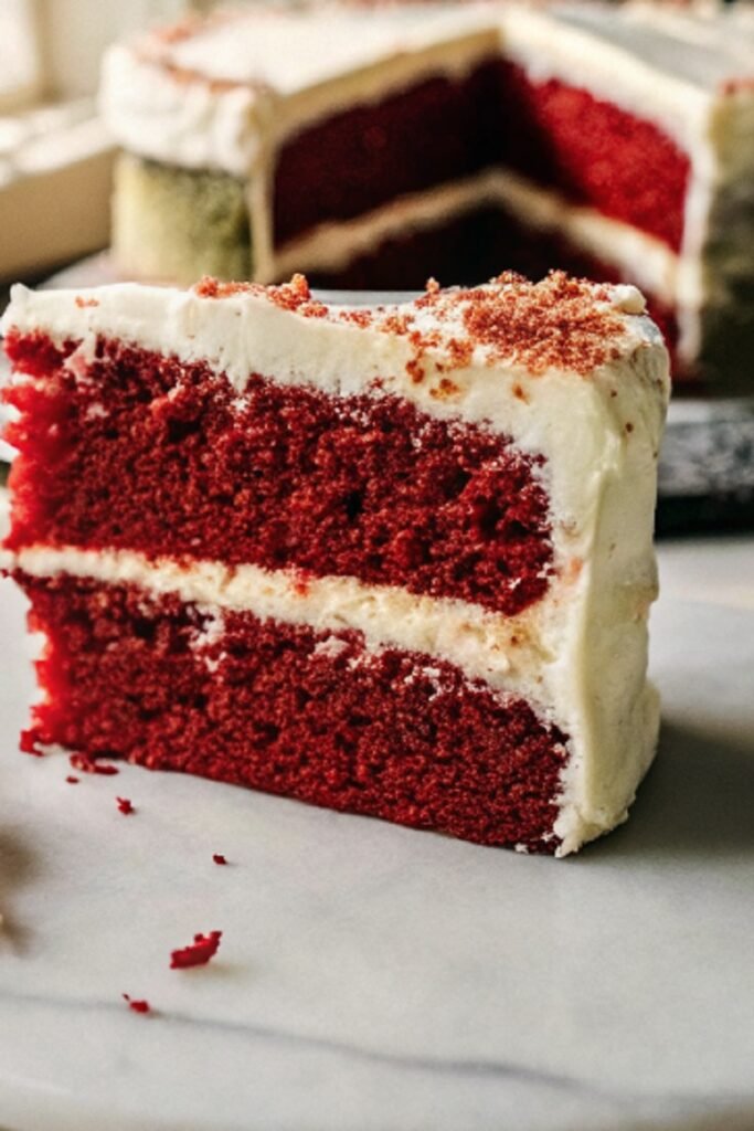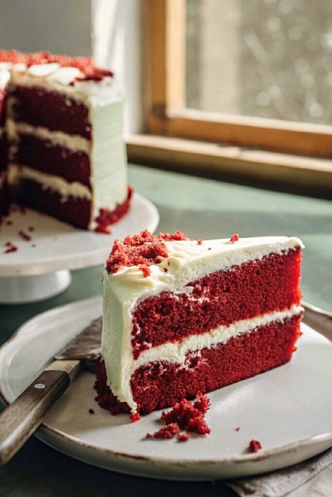 Red Velvet Cake shines best at room temperature. I love slicing it thick and serving it with coffee or tea. For parties, cut smaller slices and garnish each plate with fresh berries for a pop of color.
