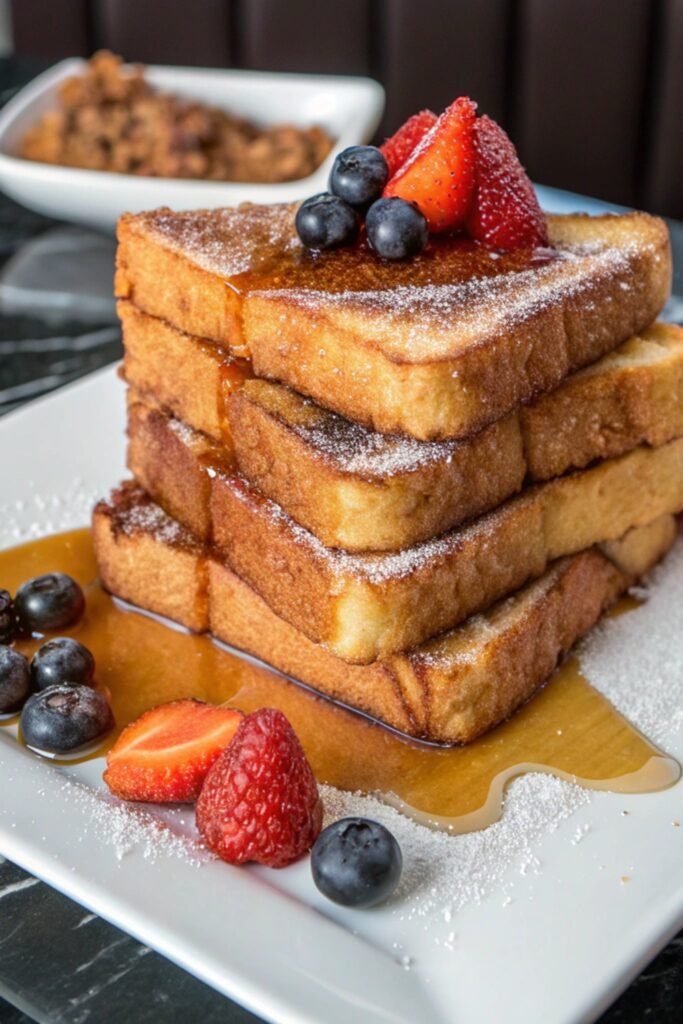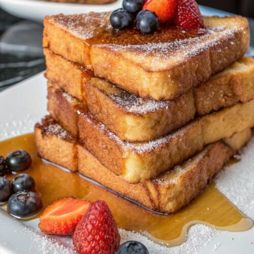Breakfast Churro French Toast is the kind of recipe that makes mornings brighter. The blend of soft, custardy bread with a sweet, crunchy coating feels indulgent yet playful, turning a simple breakfast into something to look forward to. It’s easy to make, flexible with toppings, and always a hit with guests.