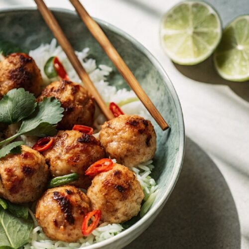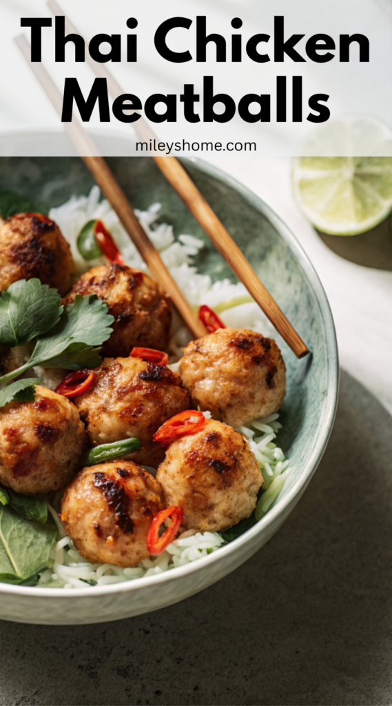 Easy Thai Chicken Meatballs Recipe pairs beautifully with steamed rice and rice noodles. They also work well tucked into lettuce cups for a lighter plate. Spoon extra sauce over everything for maximum flavor.