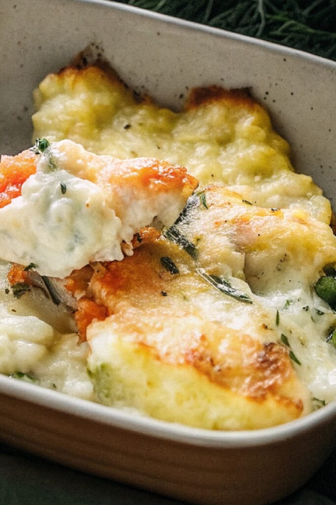 - Bake Until Golden: Place the dish into a preheated oven at 375°F. Bake for about 30 to 35 minutes until the top looks lightly golden and the filling bubbles around the edges. Let it rest for a few minutes before serving.