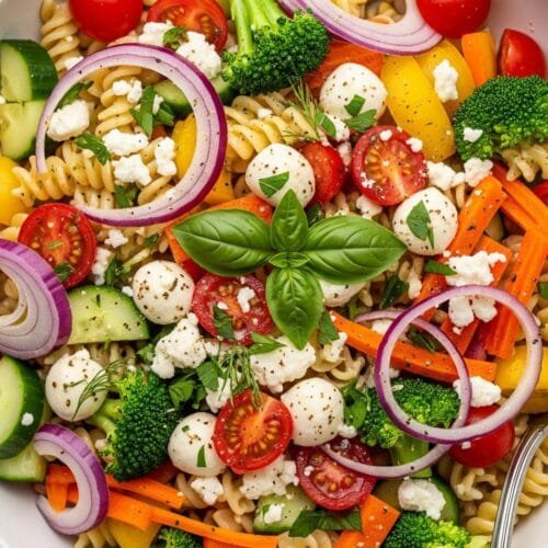I really enjoy how this pasta salad makes vegetables feel exciting, not like an afterthought. The bright colors look beautiful on the plate, and the flavors balance in a way that never feels heavy. It’s the kind of recipe I like pulling out when I want something simple, nourishing, and easy to share. You can make a big bowl in advance and keep it chilled for busy evenings, picnics, or casual dinners.
