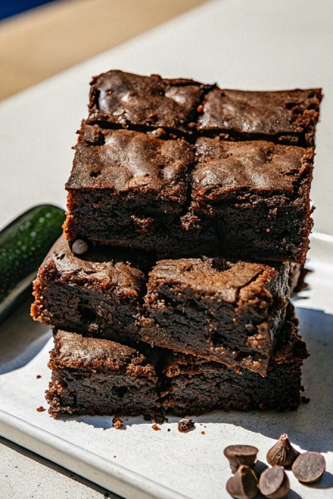 Healthy zucchini brownies taste wonderful slightly warm with a soft chocolate center. A small scoop of vanilla yogurt or a spoon of whipped cream on top creates a simple dessert that feels special without much effort.