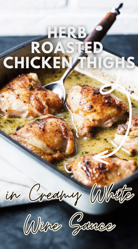 Herb Roasted Chicken Thighs with Homemade Creamy White Wine Sauce