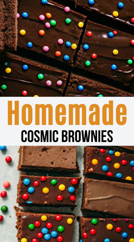Homemade Cosmic Brownies bring back that fun, chocolate heavy treat with an even better homemade feel. The soft base, smooth topping, and crunchy candy finish make every bite exciting.