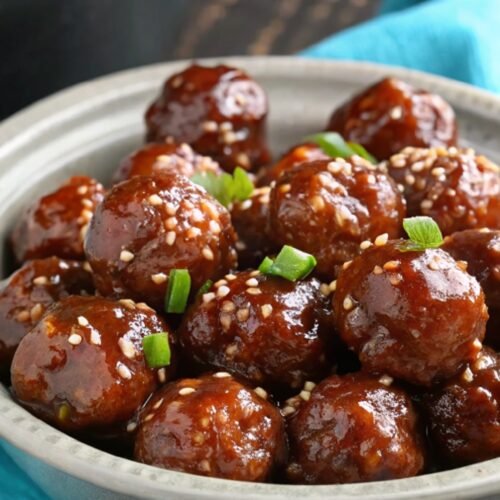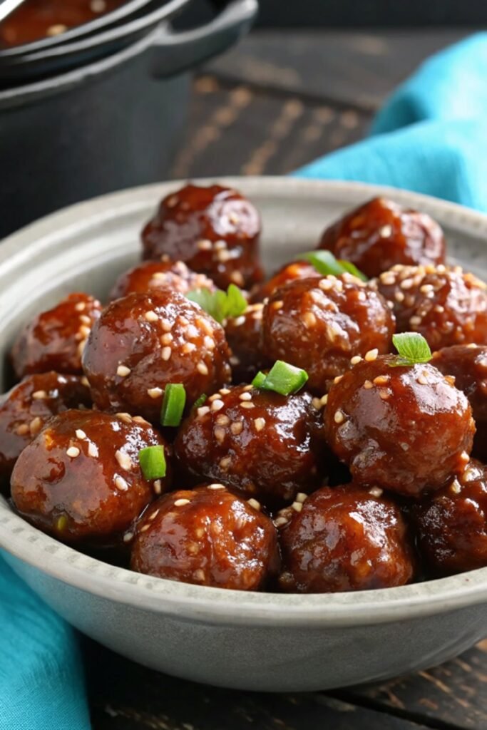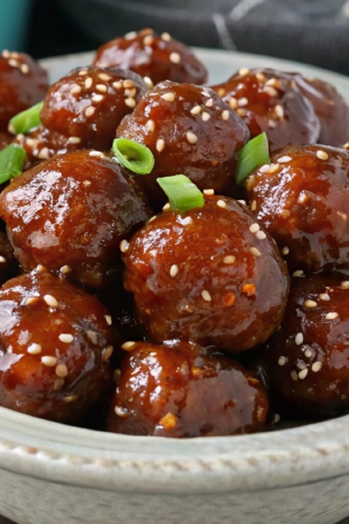 Just before serving, sprinkle sliced green onions and sesame seeds over the meatballs. These small touches add freshness and a light crunch that pairs beautifully with the rich honey garlic glaze.