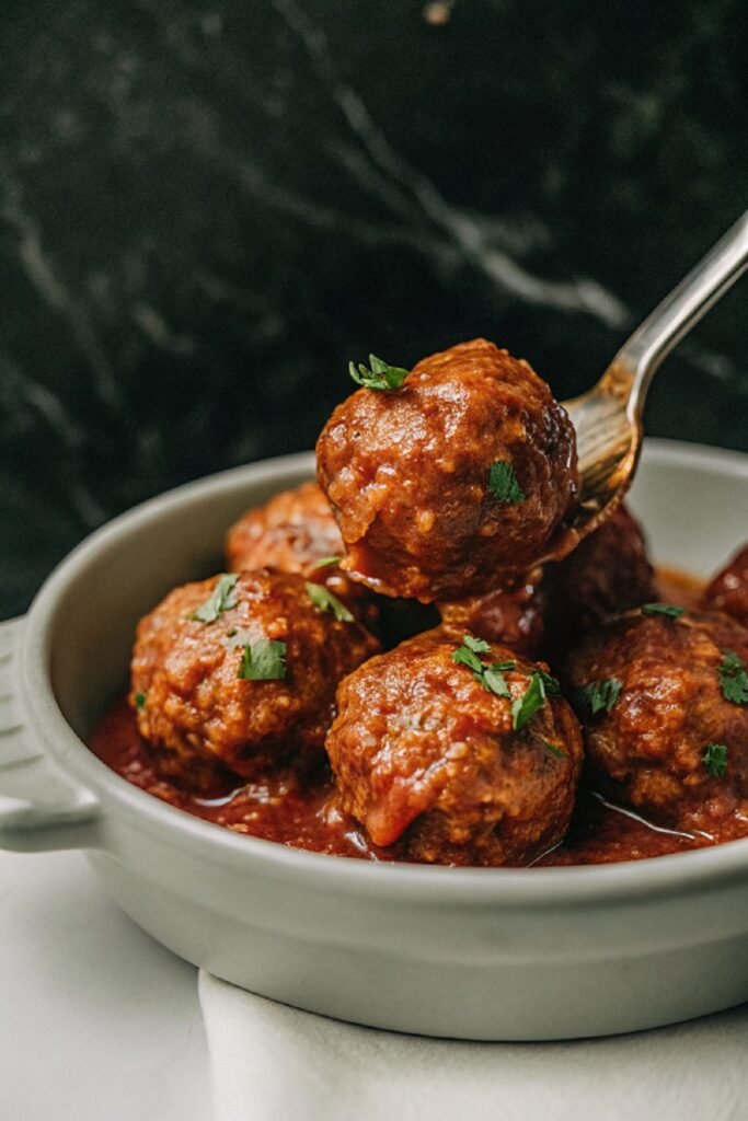 Let the meatballs sit in the sauce for a few minutes before serving. This helps the flavors settle and gives the sauce a slightly thicker texture.