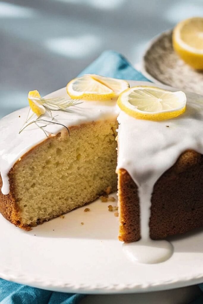 - Make and Add the Glaze: Mix icing sugar and lemon juice until smooth and pourable. Spoon the glaze over the warm cake so it slowly sinks in and coats the surface.