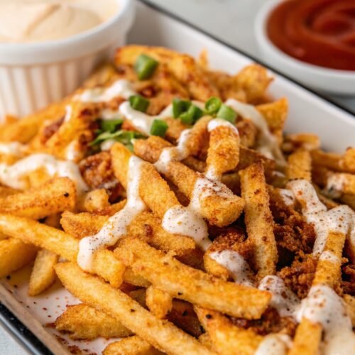 Louisiana Voodoo Fries bring bold comfort food energy straight to your kitchen. Crispy fries layered with spice, cheese, and ranch create that crave worthy bite that feels indulgent and fun.