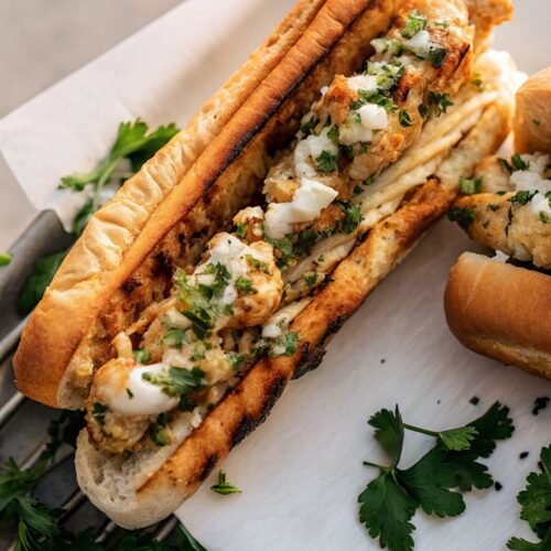 When feeding a crowd, I like setting everything out buffet style with rolls, herbs, and lemon wedges. It lets everyone build their sandwich exactly how they like it and keeps things relaxed.