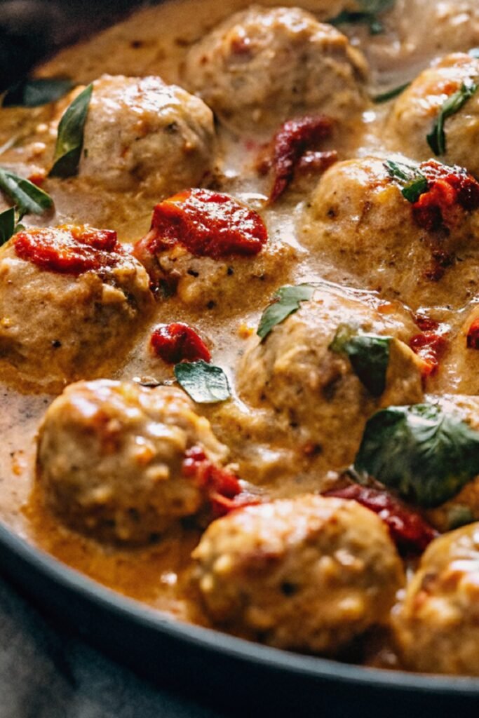 The dish works beautifully for weeknight dinners, family meals, or even casual gatherings with friends. Every bite offers juicy meatballs wrapped in a velvety sauce with little bursts of sun dried tomato flavor.