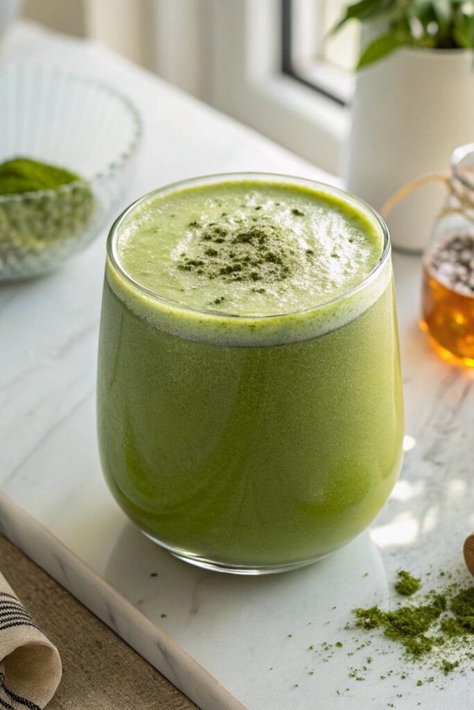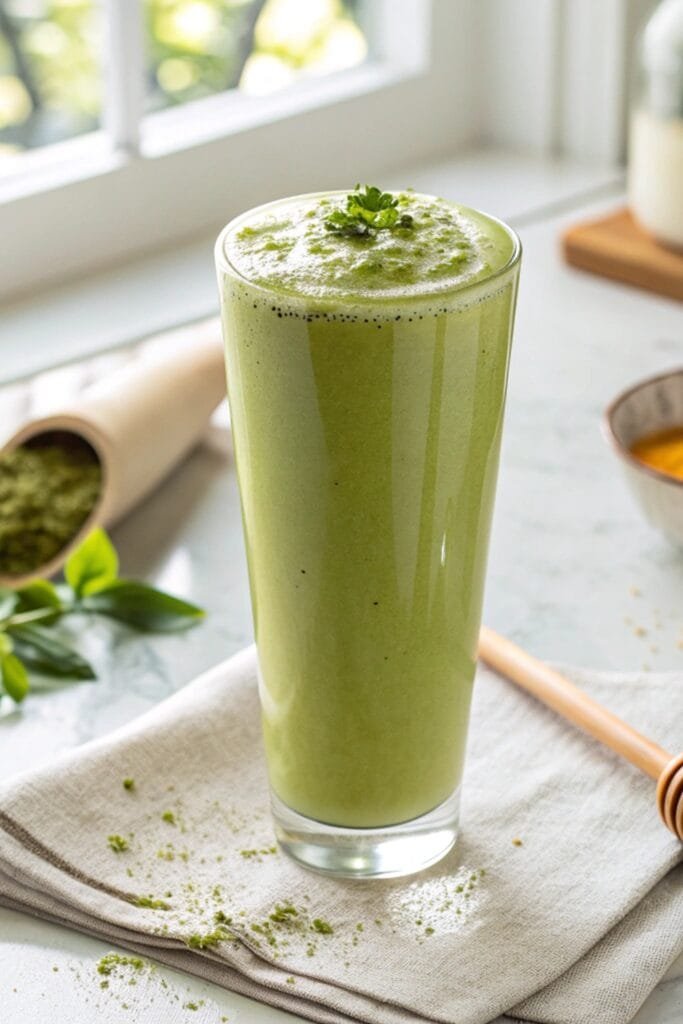 Honey drizzles – I can hardly make a matcha smoothie without them. That soft sweetness from honey ties everything together so beautifully. It gives the drink a gentle warmth that feels comforting every single time. For a little extra charm, I like to dust the top with a bit of matcha powder or cinnamon. It makes the smoothie look straight out of a cozy café, right at home.