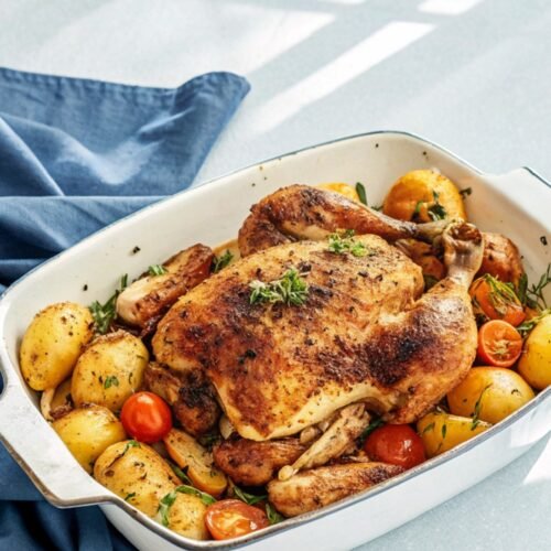 This Moroccan roast chicken and potatoes recipe is aromatic, comforting, and flavorful. It’s a perfect generous meal for family gatherings, nights when you’re craving bold spices, or any time you need a simple one-pan dinner.