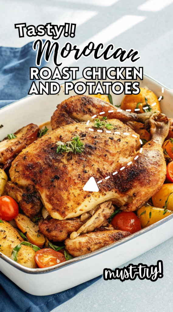 Moroccan Roast Chicken and Potatoes works beautifully as a stand alone meal. Serve it straight from the pan with warm bread to scoop up the juices. A simple cucumber salad or yogurt sauce adds a cool contrast to the spices.