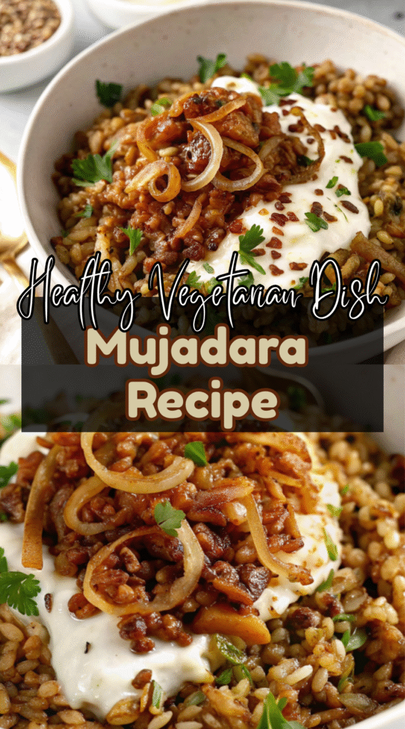 Mujadara works beautifully as a main meal or a hearty side. Serve it with yogurt, a cucumber salad, or a simple chopped tomato mix. A drizzle of tahini adds richness, and lemon brings a bright contrast that lifts all the spices.