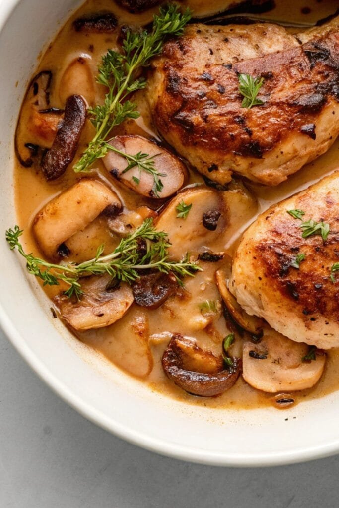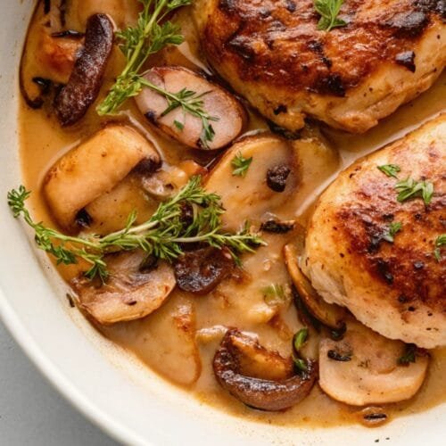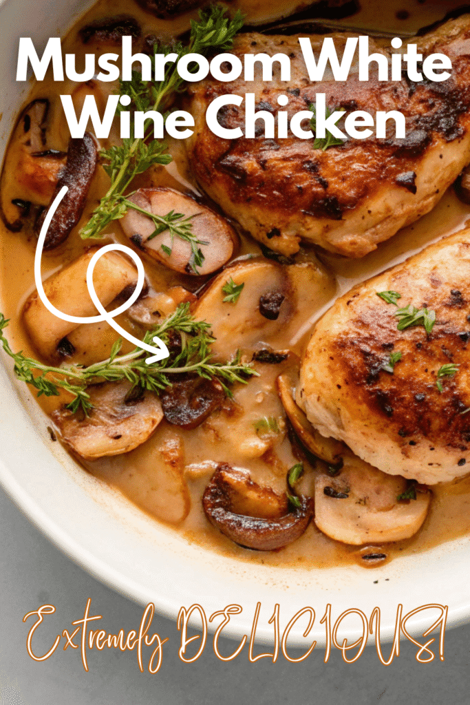 Mushroom White Wine Chicken brings together tender chicken breasts simmered in a creamy sauce made with mushrooms, garlic, and a splash of dry white wine. The chicken stays juicy, while the mushrooms soak up all that buttery flavor. The wine balances the richness with brightness, and a touch of cream ties everything into a velvety sauce. It’s the kind of dish that feels fancy but is easy enough for a weeknight.