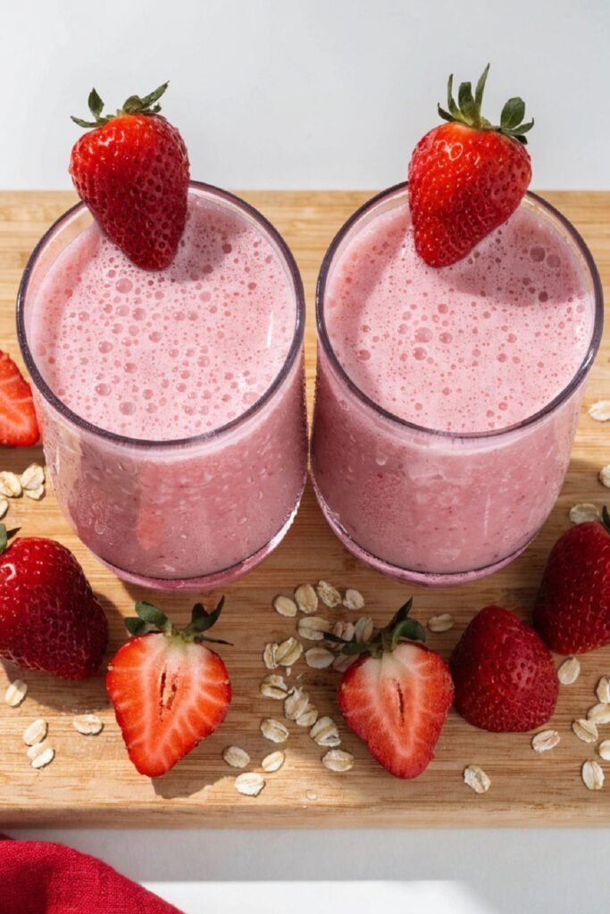 This smoothie works great on its own, though you can make it feel more special with a few small touches. Pour it into a chilled glass and top it with sliced strawberries or a sprinkle of oats for a nice look.