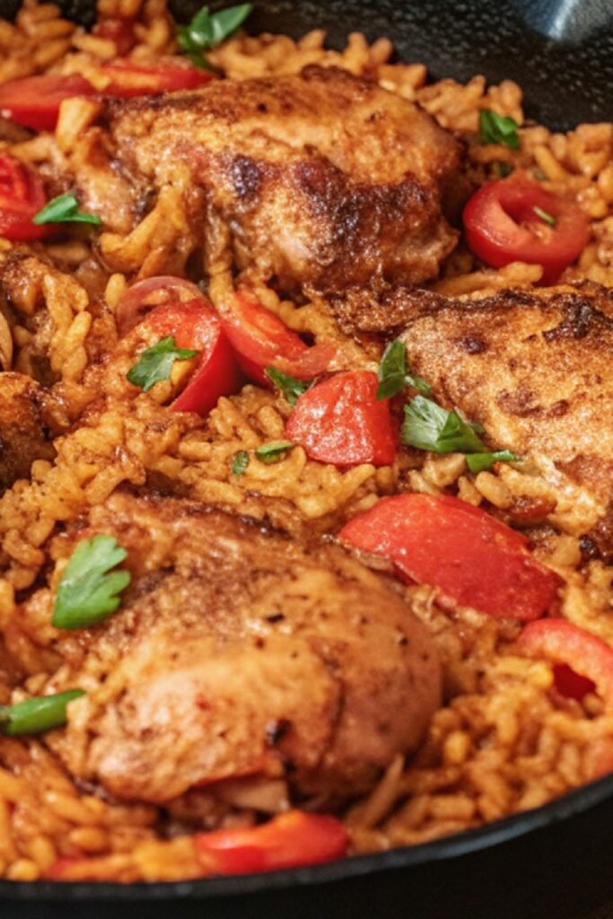 Cooking everything in one pan also allows the ingredients to share their flavors. The rice absorbs the spices and chicken juices, which creates a dish that tastes rich and well balanced.