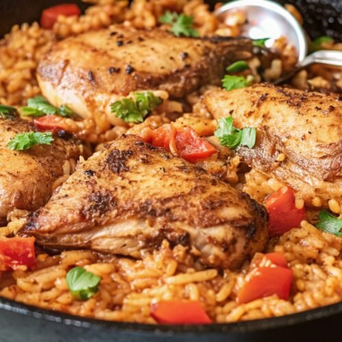 The juicy, heavily seasoned chicken pairs so well with the tender rice that soaks up all those savory pan juices. It’s the perfect flavor combo! And this dish makes for such a delicious hearty meal.
