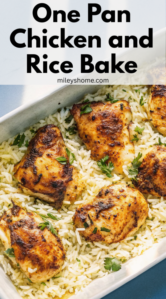This one pan chicken and rice bake is simple to make (no mess required!) with just a few ingredients you probably have in your kitchen. It’s comforting, hearty and full of delicious seasoned flavor.