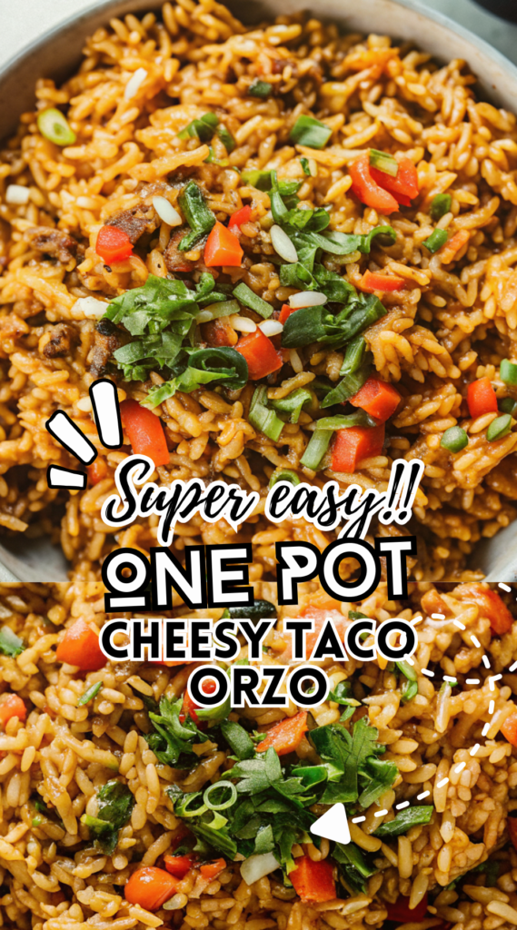 One Pot Cheesy Taco Orzo brings fun, comfort, and bold flavor together in one easy dinner. The cheesy sauce, tender orzo, and taco seasoned beef make every bite feel rich and filling.