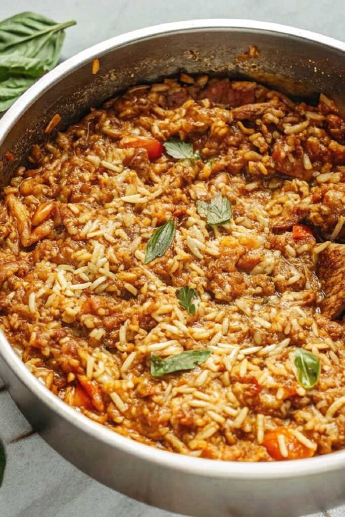 This recipe brings classic comfort with less work. Orzo cooks directly in the sauce, which gives the whole dish a thick and cozy feel.