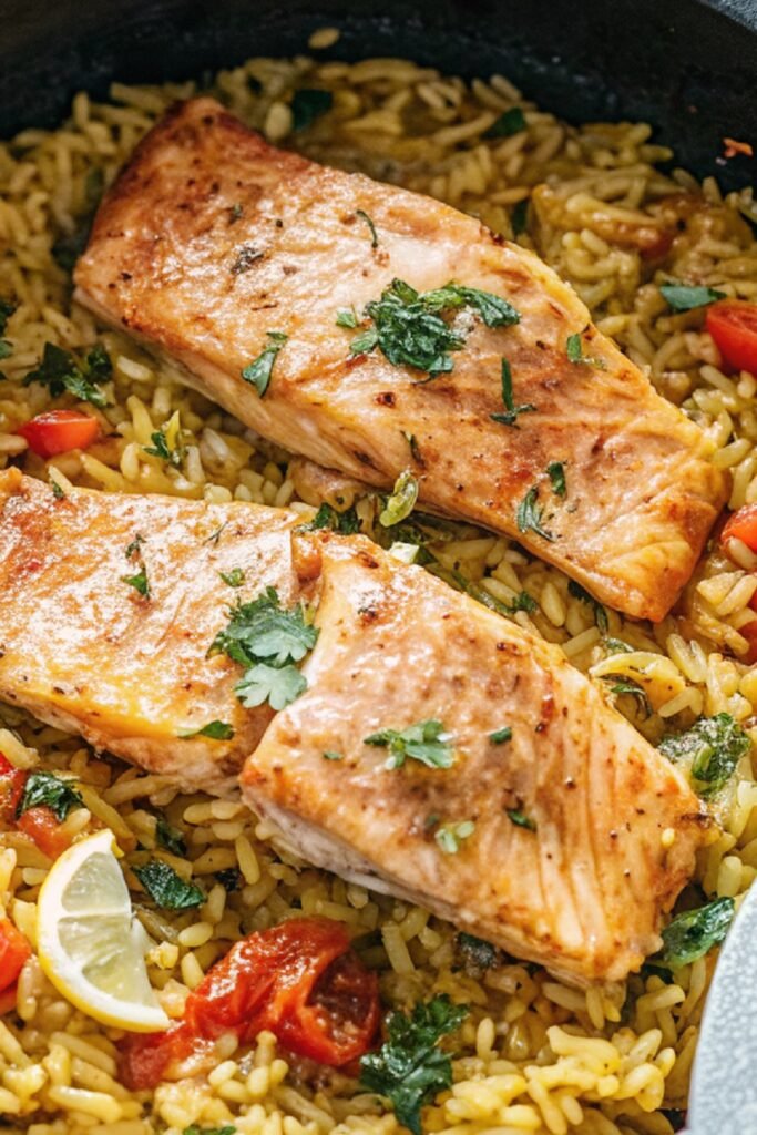 One Pot Salmon And Rice brings comfort, flavor, and ease together in one simple meal. The rice soaks up every bit of seasoning while the salmon stays soft and bright with lemon and herbs.