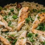 This meal hits that sweet spot between easy and impressive. Everything cooks together, so the rice absorbs the seasoning, garlic, and broth instead of tasting plain.